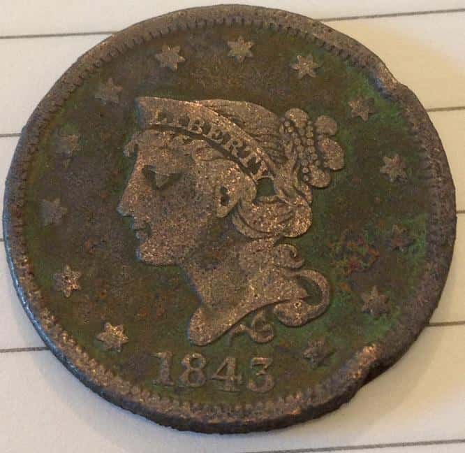 1843 Large one cent penny with my Garrett