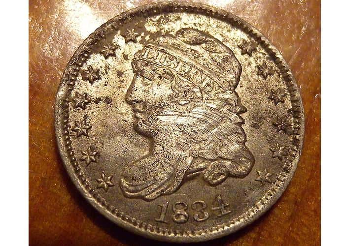 <p>I was expecting that it was probably a 3 Cent piece like I had just seen in my brother's book of coins that he has found detecting over the last 35 years. Much to my surprise after washing it off and spending a few minutes with a coin book, it ended up being an 1834 Capped Half Dime. For me being a newbie, I'm very excited about this find.</p>