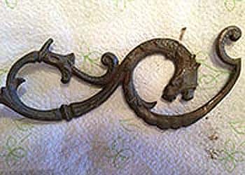 <p><strong>I found this cast bronze piece detecting in my back yard.</strong> I am hoping someone can give me an idea as to what it might be.</p>