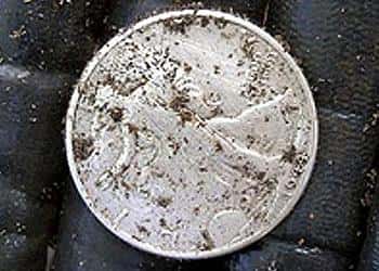 <p><strong>My hunting buddy and I were hunting a new location that has never been touched as far as we know.</strong> We were in the mulch area that lies between the swing sets and 2 other play areas when I received a solid 42 on my detector. About 5 inches down revealed a shiny silver 1944 Walking Liberty Half Dollar. My very first silver coin! I didn't have my camcorder with me that day but he took a picture of it with his phone camera. What a jaw dropping experience!</p>