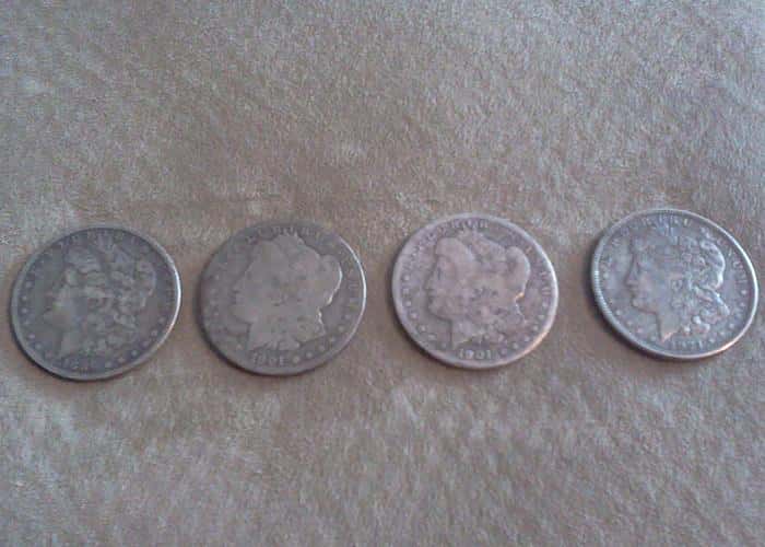 <p><strong>I have been using a White's V3i since March of 2010.</strong> Well I had to take the wife's van in to have an oil change and get the rotors replaced. Cool thing is that I recently got permission to detect the old property next to the garage. So I dropped the van off and headed over to start swinging. First thing I did was went over to the property corner and see if I could find the iron pin because the property owner asked me the last time I was there if I could find his corners. Found all but two so I am still looking for them. And again no luck today. WAY to many nails! So I decided to go over by the road which is original to the area and do some swinging under the trees. I had been hunting for about 45 minutes at this point and started to find some older clad and then I got this slamming signal. For you V3i guys it was a solid 91 with half green and half red bars in each frequency straight up and down on the screen saying it was 2" down. So my first thought was "well...it could be...." so I dug it up thinking "its going to be part of a car". Well HOLY COW my first silver dollar!!! I immediately fire off a group text to the boys to let them know. Of course they are replying back that I was full of it. So I slid my detector over and could not believe what the screen said......SAME SIGNAL at 3" deep!!! I dug really careful and there was another silver dollar! I dug it out the rest of the way and let the boys know I had two!! Of course the responses became more colorful which I do not blame them as I wouldn't believe me either. I placed each dollar on the hole it came out of and sent the boys the second picture so they will finally believe me and start getting myself ready to swing again. I start swinging again and wouldn't you know.....SAME SIGNAL at 4-5" deep!!! At this point I am praising God out loud!!! I dig it up and I am in shock!! I let the boys know via text and they start responding with "It's a cache! No one drops three silver dollars!! Search that place hard!!" Well I started swinging again and POW!!! SAME SIGNAL this time at about 6 or 7" deep. So I dug and there it was. I had to leave!! I was not in the right state of mind to be digging on the side of the road at that point. I figured I will hit again another time....I have got to go before I get hit by a car because I am floating around on cloud nine!! I get home and take a picture of the coins before I rinsed the dirt off of them and one after I rinsed the dirt off of them. DATES ARE AS FOLLOWS: 1886 O 1901 O 1901 O 1921 Also found two silver Washington quarters, a silver mercury dime and two silver Roosevelt dimes!! I am still in shock!! I don't think I could possibly top this day!!</p>