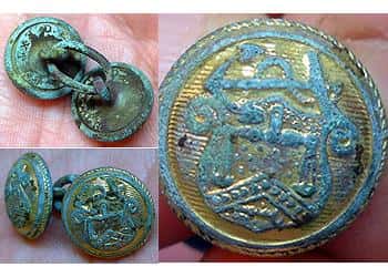 <p>Then along came a 12/31 6-7” signal… I figured it was probably an old pull tab, but you never know and I was digging anything that repeated that day… I cut a deep plug and in the side of the plug I saw some gilt… and popped out a set of cuff links… not just any cuff links… Federal Revenue Cutter buttons appear to be Civil war era... It says this group eventually became the Coast Guard.</p>[split]