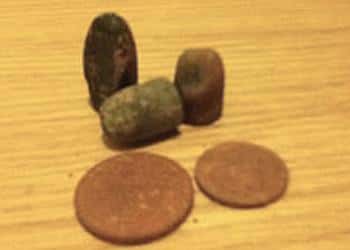 <p>Having dug the first target out, I discovered a single ring bullet. Next, within 30 cm I found a 2c coin and then after checking the hole again a 1c coin, and then found two other bullets.</p>