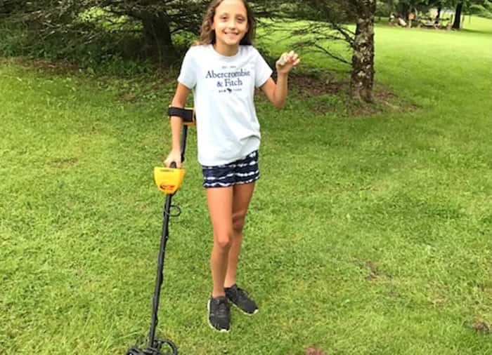 This year we traveled up to the property during 4th of July week for some relaxation and metal detecting. On July 2nd while everyone was in the house, I was detecting in the field around the house and dug up a Matron Head large cent in poor condition with no date visible. I ran in the house to show my wife and kids what I had found. With that my kids threw on their shoes, my 11 yr old son Chris grabbed his ACE 400 and my 11 yr old daughter Olivia took the ACE 350. We went to the same area where I had just dug the large cent which is loaded with rifle shells from target practice over the years. My daughter does not usually detect so I gave her a quick rundown on the ACE 350.