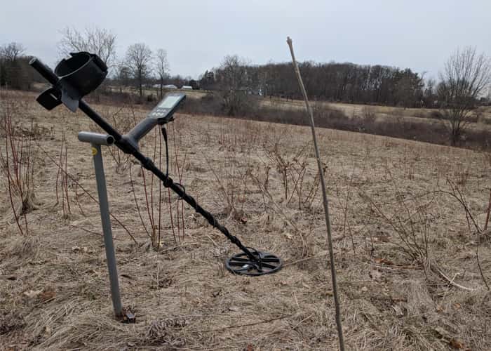 I head straight to the back corner of the field where I have done research and knew there was once an old home foundation lost over time. To my surprise the original well was still there. I knew that would make a great starting point. So I began spiraling out away from the well getting various signals.