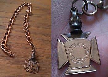 <p>I didn't know what this peculiar chain with pendant was at the time of recovery but I knew it had to be something special. It turns out that I found an old Knights Templar 25th degree Masonic watch fob and chain. There were 3 types of gold used, 14k rose gold, 14k yellow gold, and 12k yellow gold. The weight of all the gold is 1.685 Troy ounces. This is the best find I've made thus far.