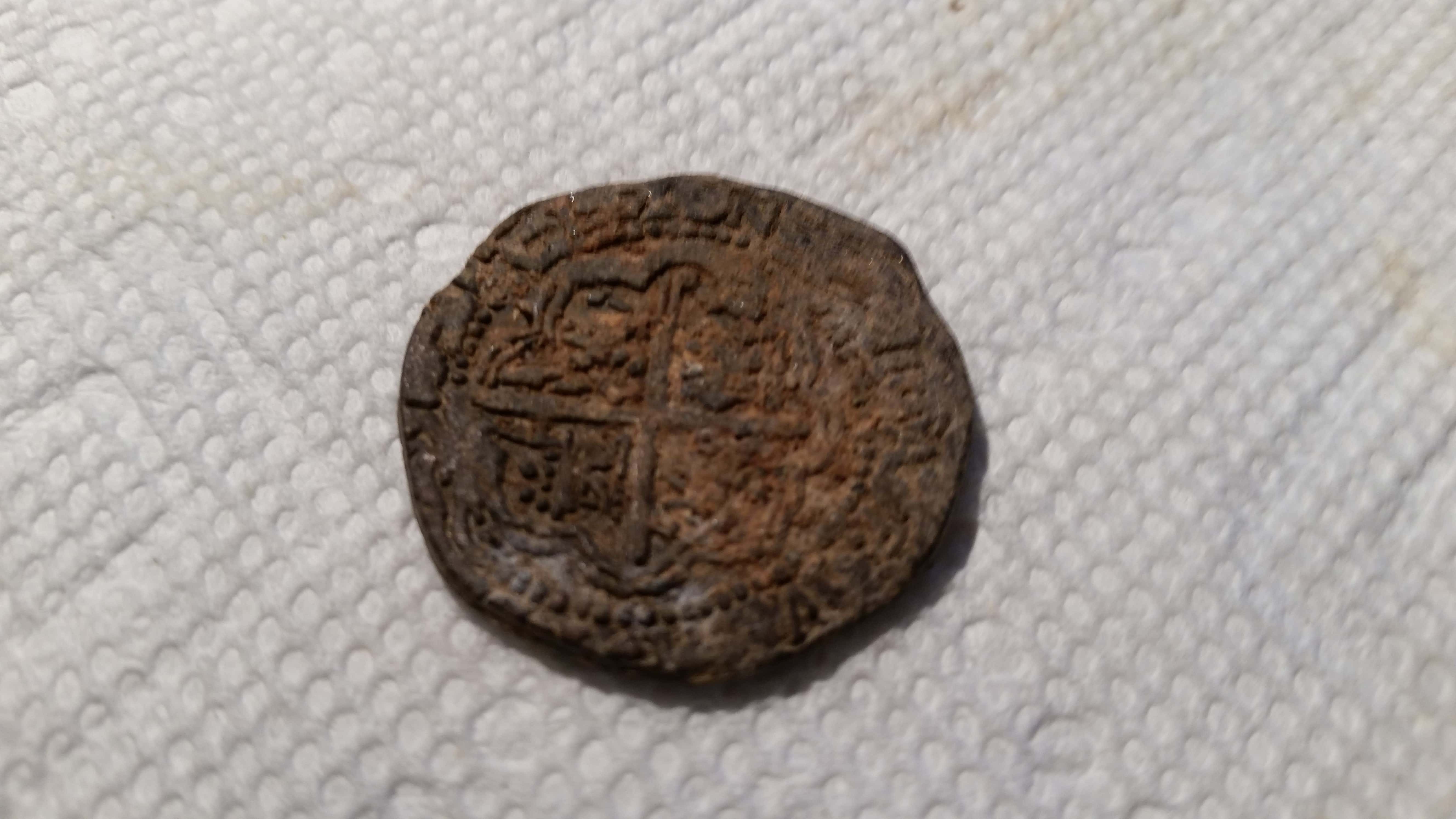 I carefully dug expecting a quarter but it was something I didn't recognize. After returning to the RV and cleaning and researching I discovered it to be a Spanish Cob Reale minted between the late 1500's to the mid 1600's. A befitting present for my 84th birthday.