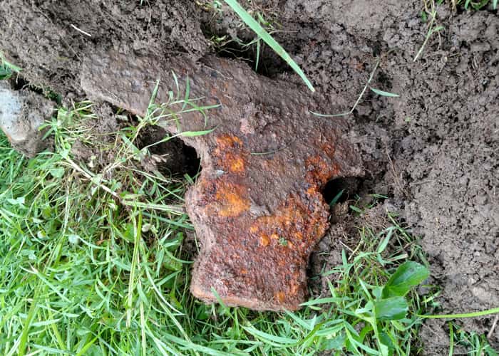 Went to a old homestead that is still standing. I unpacked my At Pro and started working the side yard and came up with a signal of 83 . Thought it was going to be a coin but was I wrong. When I dug down 5 inches I realized it was just a piece of iron. I could wiggle it some but required more digging.