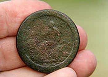 <p>I had my E-TRAC in Two Tone Ferrous and decided to rework a grassy mound when a strong clear signal of 03.47 halted me. A very deep dig produced a big coin which I presumed was another large Queen Victoria Young Head penny circa 1838-1860. The extra heavy weight of it made me look again before putting it in the finds bag. It had a pronounced rim all around it on both sides. I grinned and called out to Mark who was watching me dig the target “it’s a Cartwheel…whoohoo” and did a silly little Irish victory jig around the dig hole. It’s a well worn old coin but beautiful to my eyes.</p>