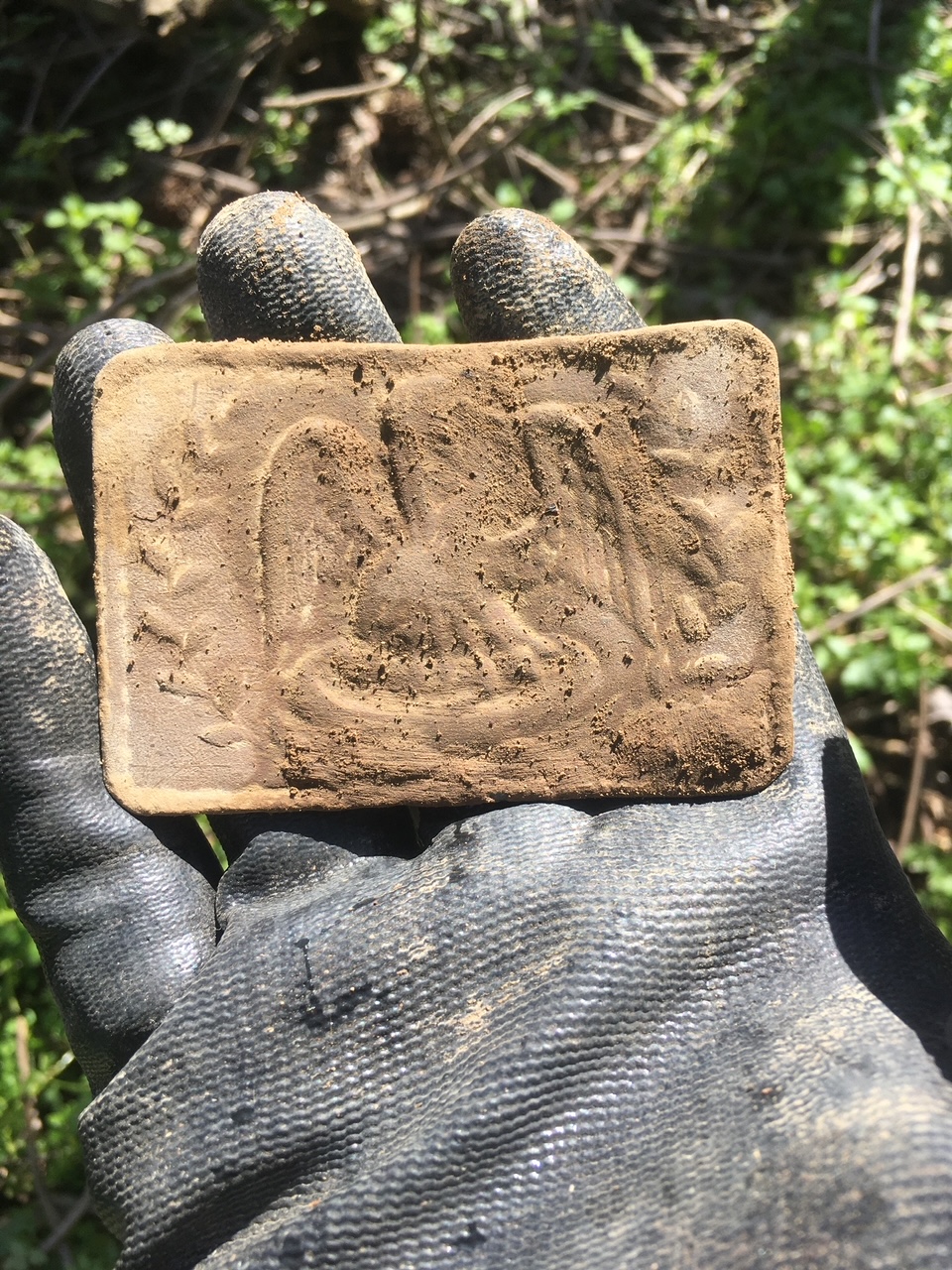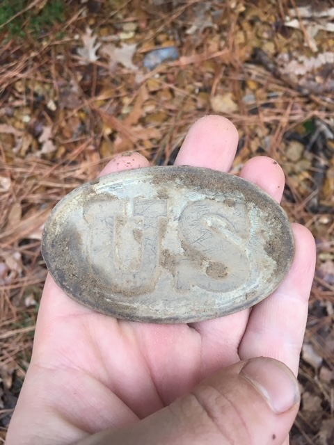 I had been detecting a while, but had recently retired my old machine in favor of the newer (then) Minelab CTX 3030 metal detector. Reagan was very new to the hobby, and was rocking the Minelab Equinox 800 metal detector. We had focused on a new site that research indicated was a skirmish location after Pemberton's army was crushed in battle and scattered in multiple directions to escape into the relative safety of the fortress of Vicksburg. The first couple trips to this locale showed promise, as we were recovering a few fired and dropped bullets of both US & CS origin. Reports of dueling artillery were also borne out, as we found cannister shot and shell fragments. Both machines did a terrific job of sniffing through the trash (of which there was a lot) to find the treasure. Though it was not as productive as other spots we had access to, we kept at it, and were going to be handsomely rewarded. A beautiful US plate showed up on our third trip to those spot, and because it was found on the fringes of where we had been hunting, we expanded our parameters. Walking into a grown up clearing, my first target in this new area was a beautiful bayonet scabbard tip. Being the good buddy I am, I instantly put my machine down to fetch Reagan and give him a chance to get in on a potential hotspot. Five minutes into him coming over, he calls out to me “hey I think I found a sword buckle!”. I was dubious, as at the time he was very new and we both had the habit of smoking too much hopium and trying to fashion junk into relics. I walked over, and he holds out a flat rectangular object that certainly bears a resemblance to a sword plate…. After a few gentle brushes on the face, a bird began to appear…. But it wasn’t no Yankee eagle! As it dawned on me that I was looking at a Louisiana State Seal Pelican buckle, thoughts flashed through my mind of whacking him over the head with my shovel, leaving him as the last casualty of a forgotten fight, and walking out of the woods solo with my new prize.