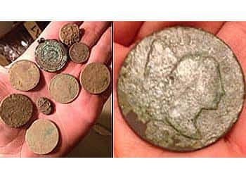 <p>One day at a site, I found 5 old Colonial coppers including a gorgeous 1723 Woods Hybernia half penny and an incredible 1730 King George II copper.</p>