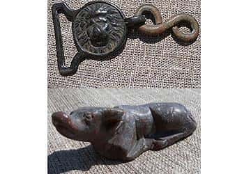 <p>After initial excitement was gone and all the coins, as my friend thought, were also dug out, I was left alone on that hill. Something stopped me from leaving. I was hoping to find some other piece of that historical puzzle, to get another piece… So I walked to the spot where Andrey found 14 coins in a string. A faint signal came from my X-TERRA 705, like a coin rather deep or some encircled metal object… Hmm, another coin with a hole?! Why not! I got on my knees and took out some soil. The signal was so faint, barely distinguishable. After a minute or two of digging I started taking ground out of the hole with my hands and grabbed something that was not metal at all! It was a stone figurine of the dog, lying relaxed, looking at its master. It was so well carved and beautiful, words cannot express all the joy, adrenaline and satisfaction I felt that moment! It was an oriental figurine, probably bought by a naval officer in Japan or China in the first part of the 19th century. But what gave the metal signal?! Underneath the figurine was another nail, bent to form a circle. Call it whatever you want, I call it Fate.</p>