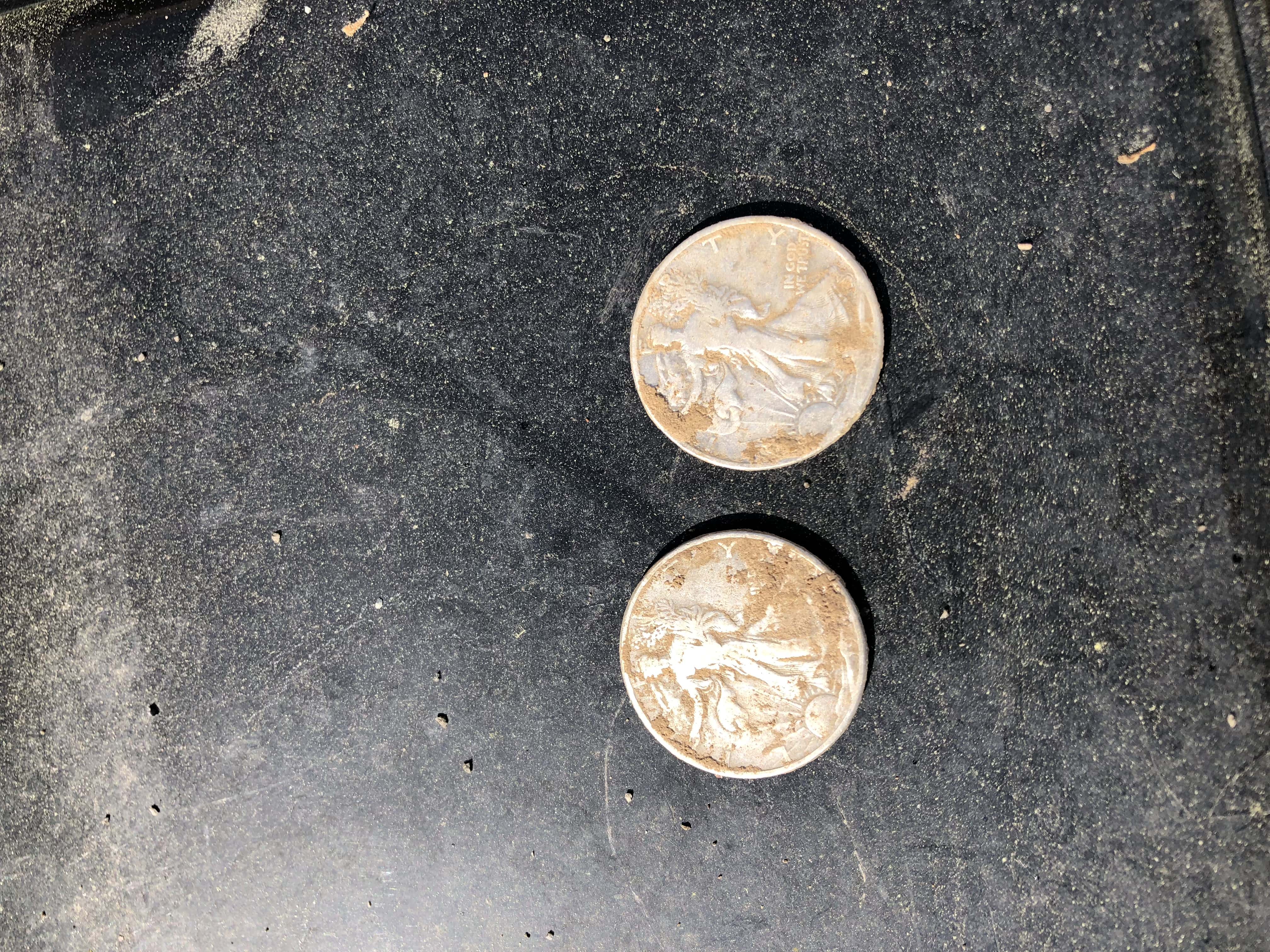 My name is Tommy, sent in some old rodeo arena finds last year to featured finds. I haven’t been detecting as much this year as I would like, but got out today and looked in a field behind the arena where people would have park their trucks and horse trailers. Grass was high in places, using a new AT Max I had purchased last summer, turned sensitivity up and started hunting. Found a lot of junk but did find 2 beautiful walking liberty halves. Always a great find, but really special when you find 2!! Thanks Kellyco for a great detector and to Stevie Ray for great advice on setting up and learning the new AT Max. Last year I was using a White’s MXT All Pro!