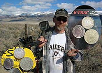 <strong>Here are some photos of finds made by a detectorist from Elko, NV with his new Minelab E-TRAC.</strong> Detecting an older site in February where there was quite a bit of surface iron trash the E-TRAC was used with a small accessory coil. The pictures show three coins from the old Western site including an 1893 Barber Dime, an early US five-cent coin dated 1866 and an 1843 Seated Liberty Dime which was the oldest coin to come from the site.