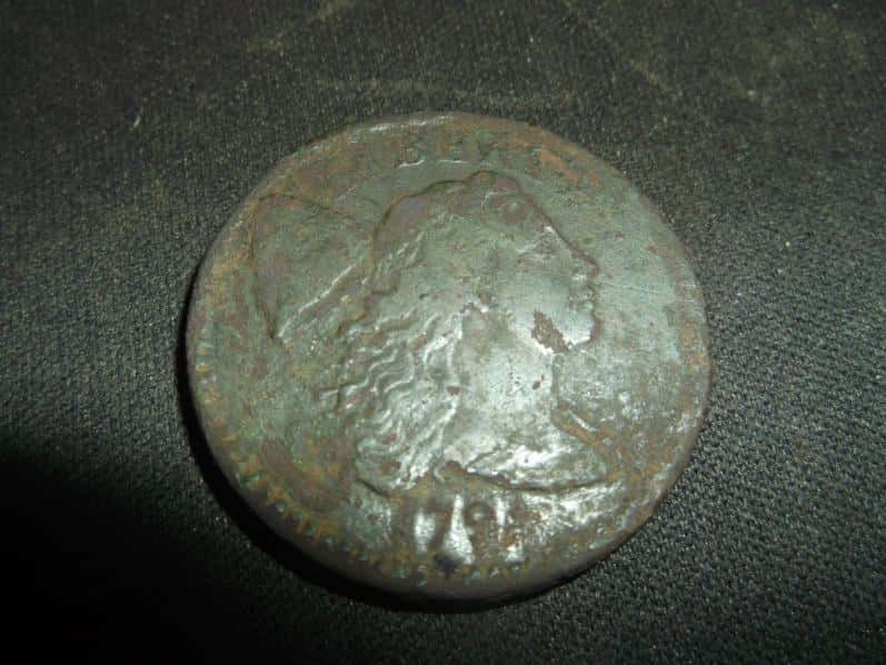 <strong>I never thought I would dig such an early US coin,</strong> there are very few found in the field, at first I thought I dug a Braided Hair or a Cornet Head because of the thickness. Me and my friend Gary found this foundation accidently walking back to the car after hunting another foundation with no luck. We were excited about coming back and I glad we did. We both dug 4 coppers all dating to the 1700s,Thanks Whites for the MXT AllPro I could never go without ant other machine.