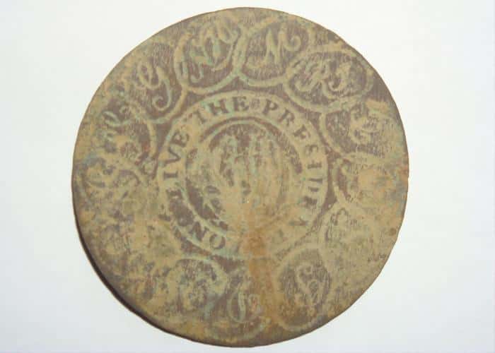 <strong>I have finally hit it big with my V3i.</strong> I was out detecting a few days ago at a new spot that I have acquired permission to metal detect. In a matter of minutes I was digging up colonial button after button. Since I do not try to rub the dirt off my finds in the field, for fear or damaging a good find, I had no idea the amazing find that I dug up. When I was cleaning my finds at home I had noticed that the one button said, “long live the president” on it. I immediately got excited and started to search the Internet. It turns out that my button was a 1789 George Washington Inaugural button! That same day I had also found a silver Washington quarter that hit solid on my V3i around 5 inches. I also found a Georgivs III Rex Virginia Half Penny.