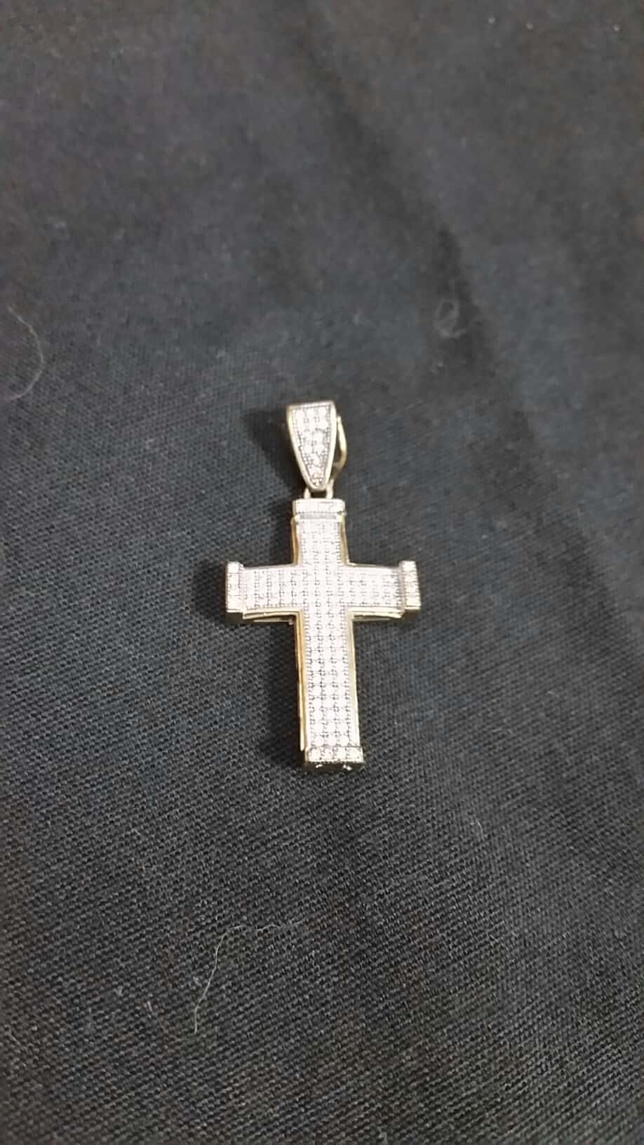 My scoop went into action, and after my first scoop, there in the hole was all this sparkling reflections in the sunlight. The outline of a cross loaded with small diamonds. I decided to end my detecting for the day and headed home. When I arrived home I had removed all the sand and tested the diamonds and they were real. I counted 118 small diamonds in the cross. This was another great find for me and I am on the beaches almost everyday looking for more.
