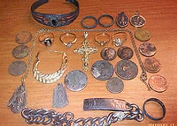 Anyway, to make a long story short, at the end of two days hunting at this spot I walked away with 6 pieces of gold(four rings, one large gold earring, and the gold Crucifix) Six silver U.S. Coins, over two and a half ounces of old sterling silver jewelry, and a ton of clad coins. I have to thank Minelab for the Excalibur II I love this machine and I honestly do not think any other machine made would have found these items in the horrible iron infested site.!! Thanks Minelab!!!