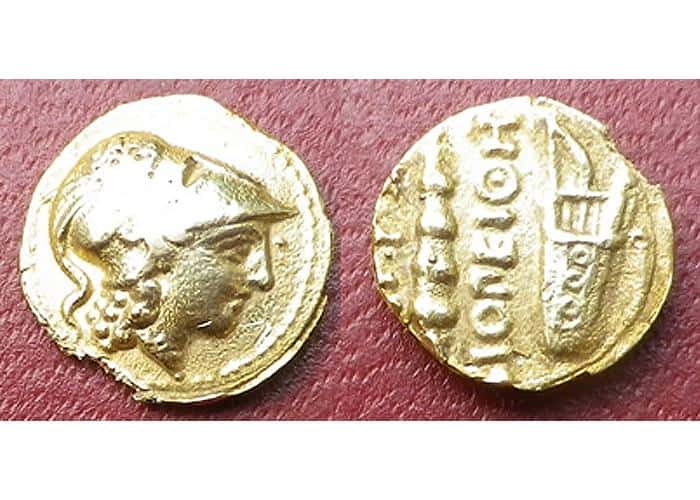 <p>It was certainly brought by a Celtic soldier and buried or lost in this field. Those finds of Greek gold coins are very rare in France. So rare, that the guys on the forums think the coin is fake.</p>