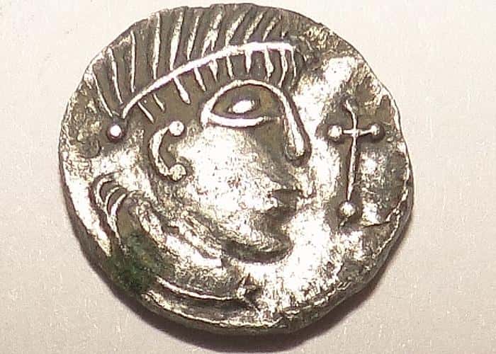 <p>Oooooooo I got a smile from ear to ear despite the rain. I found my first Merovingsiche coin (early Anglo Saxon ), and what a beauty it is.</p>