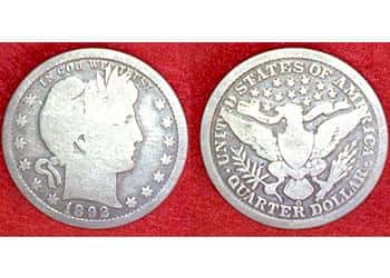 <p>I began swinging in that area and found a .22 calibur shell casing and a couple of other deep small targets. I got a solid 42 - 44 signal and knew it had to be a quarter. I dug a nice 6 inch plug and ran the pinpointer over the plug and sure enough it was in the plug. I started removing dirt and then I got the glimpse of silver!!! I called my friend over and he had a water bottle so we gently washed the dirt away from a 1892 O Barber Quarter!! </p>