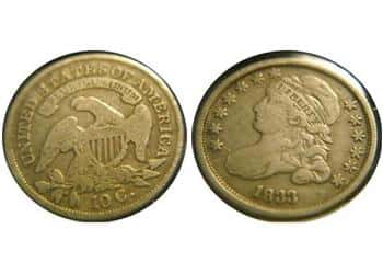 <p>I had been in the woods swinging for about 15 minutes when I got a good solid 12/45 reading at about nine inches. I was really hoping it might be a Merc, or even better, a Barber dime. Nope, I just couldn't believe it! It was an 1833 Capped Bust dime. Five minutes after that, a 12/42-44 signal. It was a 1909 Wheat. (Not an "S" or "VDB") just a 1909 but I'll take it anyway! lol</p>