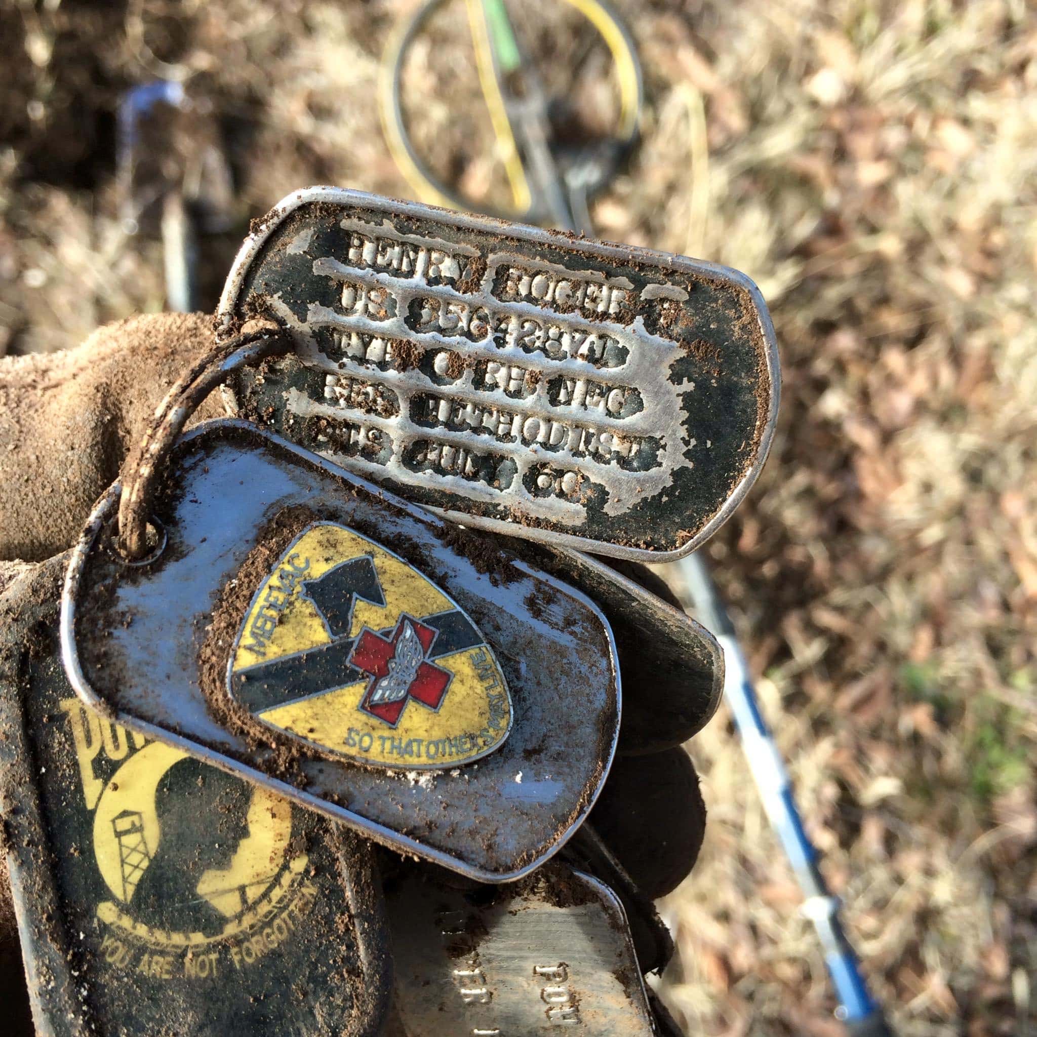 My husband Brad returned to the site days later with his White’s V3i and he finds a keychain with several dog tags and keys. After returning home, and with the help of the internet, he was able to find the name and phone number of a relative who lived in Tulsa, Oklahoma. He called the number and left a message and it wasn't 30 minutes later when the man called back.