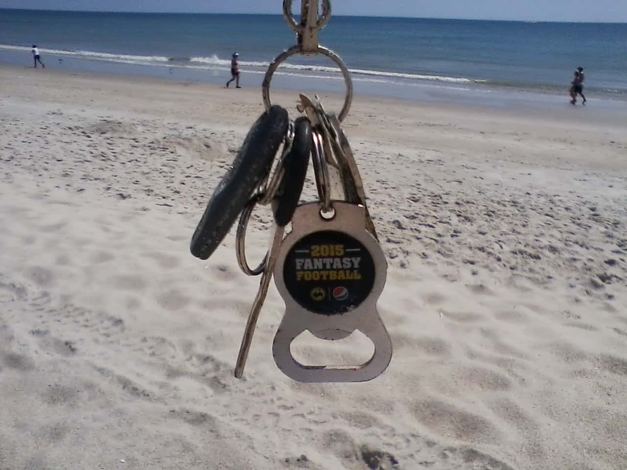 The ring was in the wet sand at low tide. The keys were in the dry sand with all the bottle caps. I was using my Detector Pro Head Hunter pulse detector.