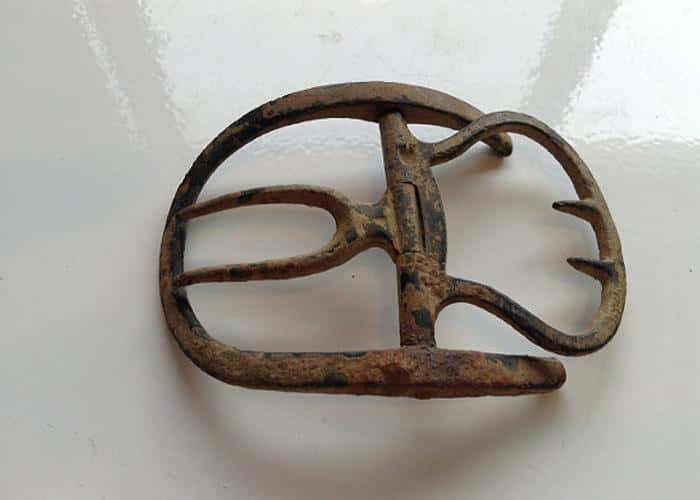 The target was mixed in with all of the other garbage. It was only 1” deep. I kicked the topsoil around with my foot and out came this fully intact colonial shoe buckle. I said to myself “Dang, this is why I have never wanted to try any other detector company.” White’s kicks some serious butt!