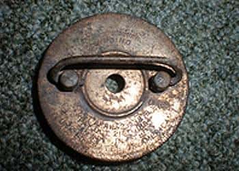 <p>Looking at it as I got it out, I thought that it was just a junk lid, that is until I saw the writing on it. It says 'Winding', then under that 'PAT April 23rd 1870, PAT October 21st 1884' , as I slowly finished reading I thought to myself 'What the heck?!?'. After a 3 hour search on the internet it came to my senses that it was a back piece of a mantel clock, circa 1870-80. Which makes it my oldest find. It is made in the USA and when whole, sells for 500 dollars. Not bad for a 12 year old hey?</p>