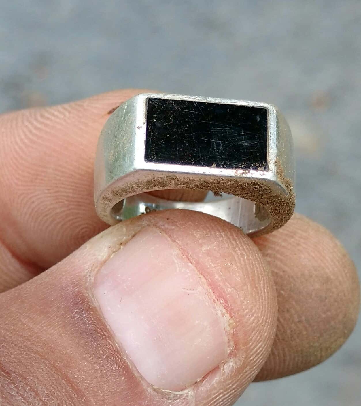 Out on a quick hunt in a conservation area in my town of Amherst MA. I got a nice solid high tone on my Delta 4000. I dug down about 2-3 inches and popped out this nice silver and black onyx ring. This is the third silver I got out of this honey hole. I found another ring and a silver necklace in the same area in the past.