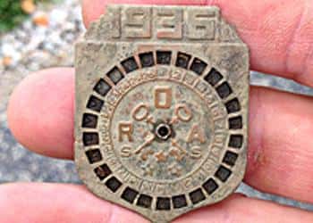 <strong>My friend and I have been hunting an old school house site that was in use from 1898 to 1965.</strong> We have found several old coins, but the most interesting finds are the relics that range from toy gun parts to roller skate wheels, train wheels and jewelry. One day I was not having much luck and was ready to give up when I ran across a nice quarter signal about 5" deep. I pulled out this brass item that had a date on the top of 1936 and had a dial with letters and numbers on it. I wasn't sure what it was, but the first thing that came mind what the secret decoder pin from the movie Christmas Story. After cleaning it up a little I noticed it had the initials ROA, so I decided to look it up on the internet and sure enough ROA stands for Radio Orphan Annie and after further research they were made by Ovaltine from 1935 to 1940 and the 1940 version is what was used in the movie. In 1941 Ovalrine stopped sponsoring ROA and Caption Midnight switched the decoders to paper because of the shortage of metal during WWII.