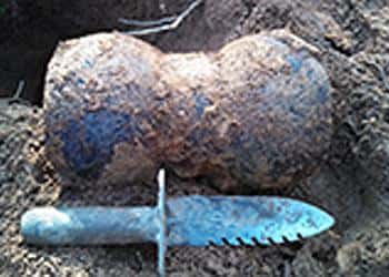 <p><strong>While metal detecting an early artillery/arsenal with land owner's permission... </strong>I have found many cannon balls. However on February 4th I was digging an area that I had walked over many times and got a signal that had proven to be artillery shrapnel in the past. This time I decided to dig it! At first I believed it to be another 32lb solid shot...until It did not break free as the others normally do. I dug down some more to uncover something I had never seen before.</p>