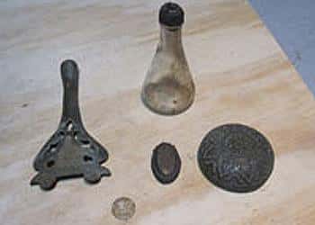 <p>Today I was detecting in the ball field and stumbled across and piece of grass that must have been part of the old settlement. I found several antique brass pieces, a broach and about 20 broken bottles. I was able to find one old bottle that still had the lid and was not broken. I think that is what set the detector off.</p>