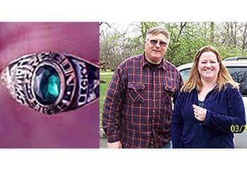 <p>Later that evening with a little research, I found a name and phone number that I thought was a match, I called the number and left a message as to who I was and it was about a lost ring. I didn't know it but I had called her parents home and they were out for a long weekend. Sunday night they got the message and relayed it to Becky and she called me back. I asked her if she had lost a ring and she said she did. Well actually her boy friend (now her husband) lost it 22 years ago.</p>