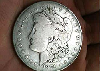 <p>My eyes couldn't believe what they were seeing! I cleaned it with some water in the field and was shocked it was a Morgan silver dollar with date 1879.</p>
