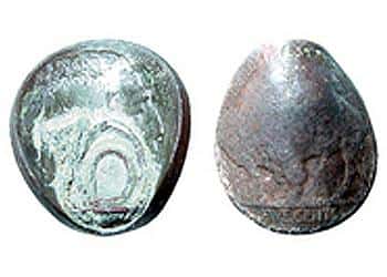 <p>I got an in-ground Fe-Co reading of 11-11 which was wavering to 12-14 as I swept the area. Generally this level indicates a nickel, but I was in a colonial period area and it could also be a small flat button. The target wasn't at all difficult for the E-TRAC at 6". When I retrieved it from the ground, I couldn't believe my eyes... It was a coin! A "Buffalo" nickel that had been bent from being shot with a .22 ca. firearm and the projectile soldered itself to the coin! Unfortunately the bullet is covering the date as you can see in the photo.</p>