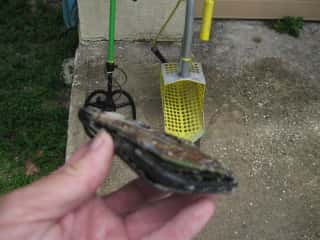 I was detecting the wet sand at a beach in Indialantic, Florida when I heard a faint threshold break with my Excal while hunting in pin point mode. I switched to discrimination and got a slight squeal. Using my custom scoop with a 15" bucket I brought up this phone.
