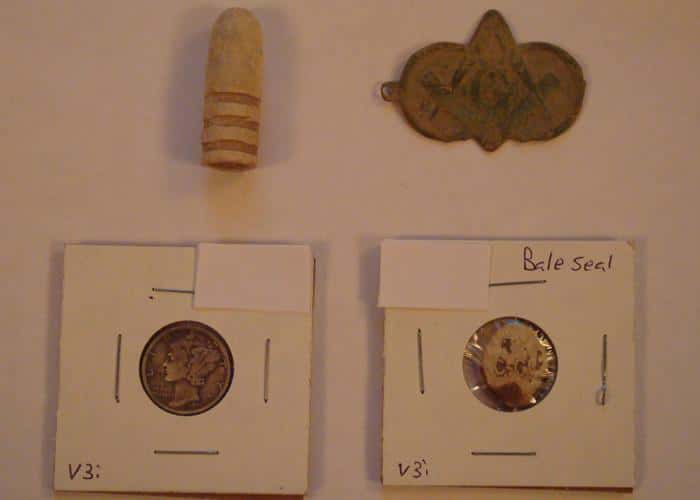 <strong>I would like to start out by saying thanks for making such amazing detectors.</strong> I decided to upgrade from a DFX to a V3i back in January, and man am I glad I did! So far I have found 3 large cents, a 1941 mercury dime, and a lead bale seal. All of which were found in spots where I thought I had previously hunted out with my DFX. The V3i ability to pick up small objects very deep in the ground is just amazing. I have also found a small piece of metal with the Masonic (Free Mason) symbol on it. I am not sure what it would have been to, but I was very excited to find it since the Free Masons are such a secret society. My most recent find was a huge led bullet found near a battlefield in PA. The Bullet was about 9 inches deep, but my V3i picked it up with no problem. It does not look modern since it is made out of lead. My best guess would be it’s probably from the Civil War era.