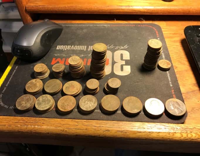 Two days later I was thinking that when people sit in lawn chairs at the soccer fields, they may be a little further out than my first search. Again using the F75 I just did one side line, only I moved two swing length out from the soccer field border. Collecting $8.00 and change. Search time of 1 ¼ hours. Yes I still have the other side I need to do on a future search.