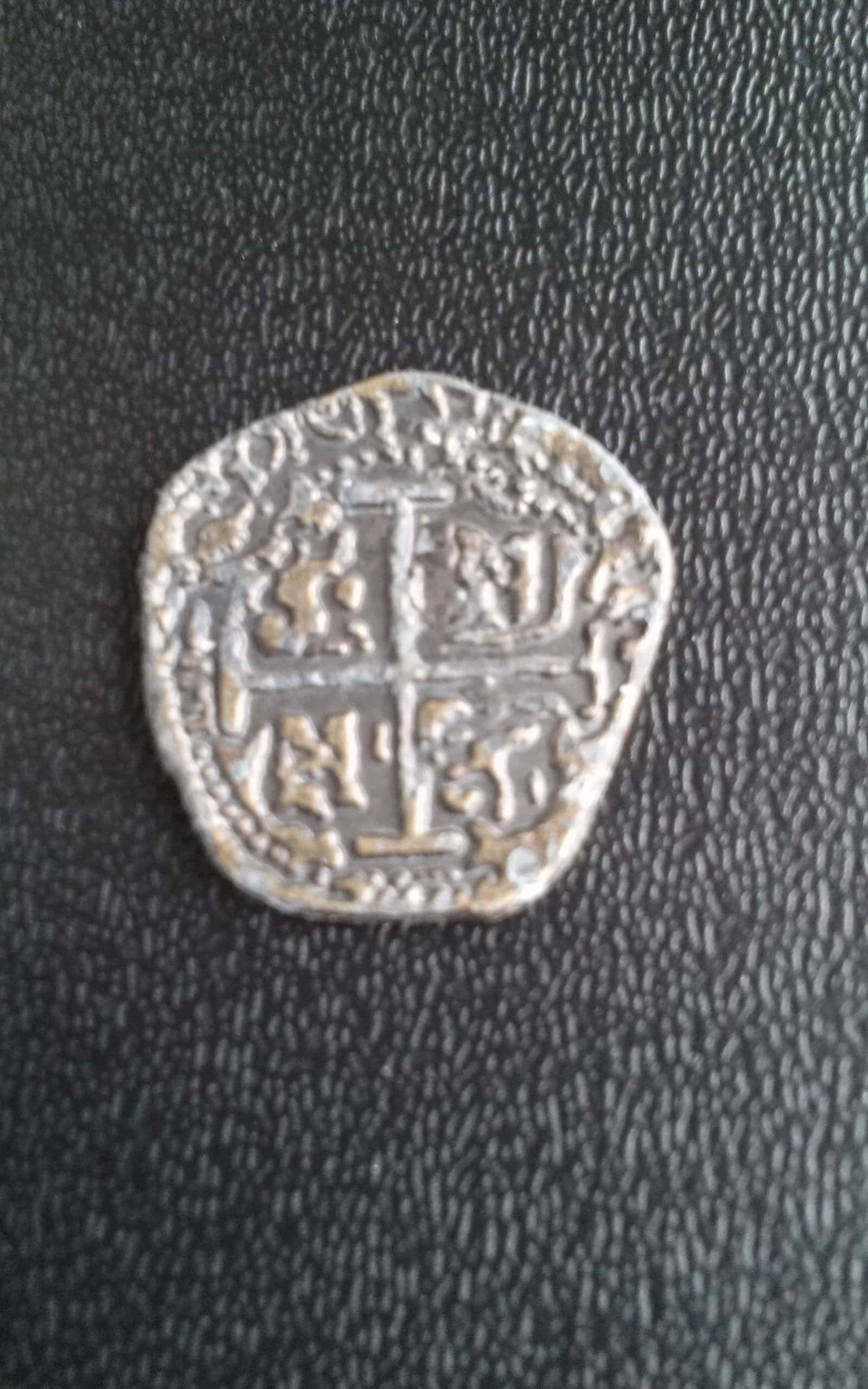 My wife and I went to North Carolina the last week in April. I was metal detecting using my AT PRO, I have only been detecting for about one year, when I first found it it was covered with scales of salt. When we got back to New Hampshire where we live I placed the coin in vinegar for about twenty minutes and the salt scales were gone. Final results. Someone told me it was a replica, and someone said it was from the seventeenth or eighteenth century, I don't know. Even if it is a replica I don't care, I was excited.