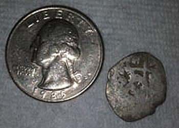 <p>When I first picked it up, I knew it was silver. Before seeing the shape, I thought it was a silver three cent piece. Closer inspection I thought a broken Reale. It was not until I got home and posted it on my detecting group's Facebook page that I realized what I had.</p>