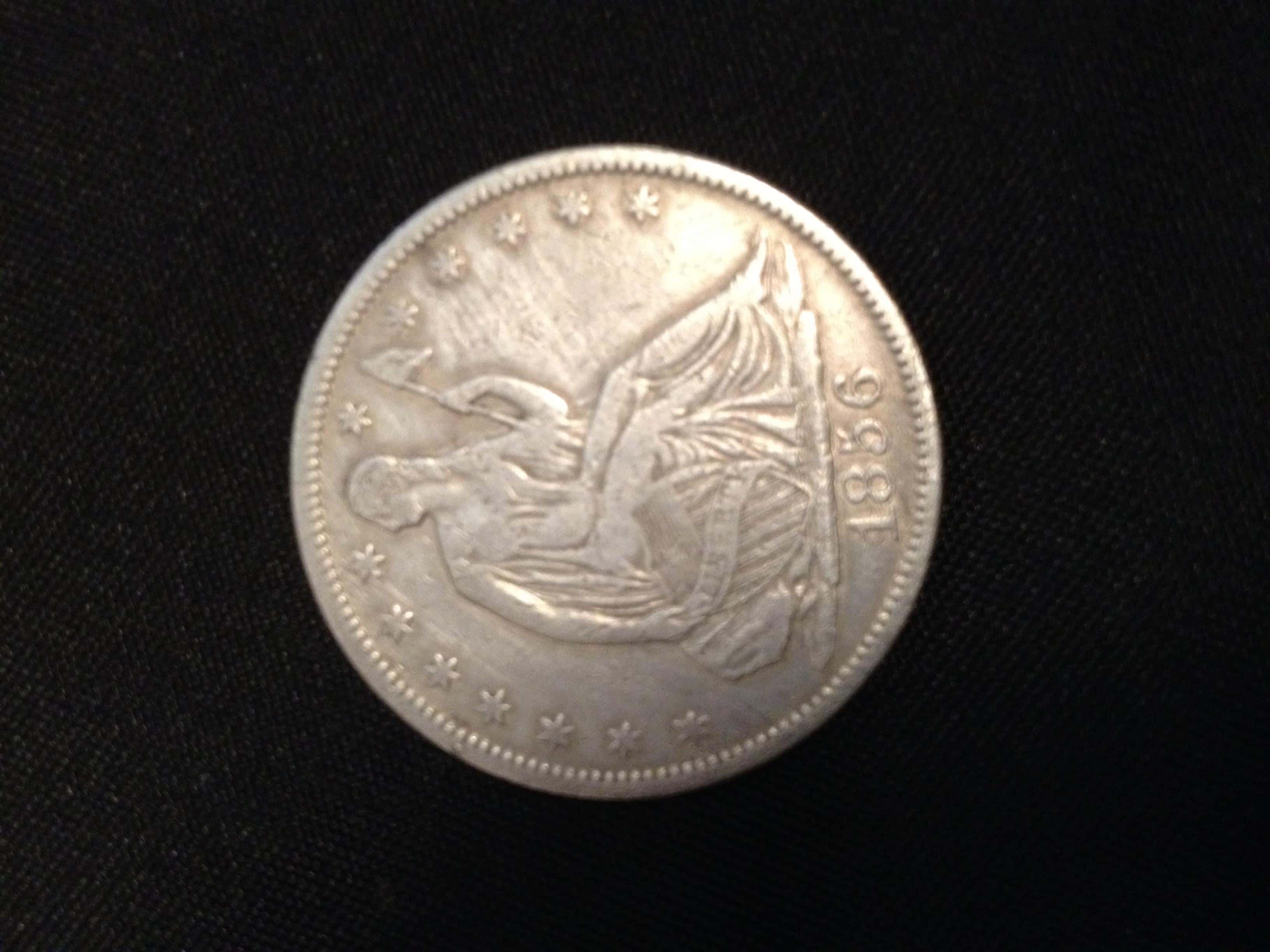 <strong>One afternoon this past July (2014) I grabbed my V3i and decided to go out for an evening hunt.</strong> My wife had suggested 3 or 4 times to try this little park not far from our house. I never gave it much thought because I knew the park was not that old and I try to find older places to hunt. Not having too much time I decided to give it a shot. I had only been detecting about 20 feet when I got a good signal at 4" to 5" deep, so I began to cut slightly deeper and out popped this shiny silver coin! It was an 1856 Liberty half dollar and it was in excellent condition! I could not believe it! After doing a little more detecting, I determined that there must have been and old home there at one time. Needless to say that made my evening and thought, this couldn't get any better. I was wrong. When I got home I looked up the value of the coin and found out that this coin was a special "S" minted and that made it worth 10 times as much as the other 2 coins minted the same year! What a bonus to an already great find. Thank you White's Electronics for a great metal detector!