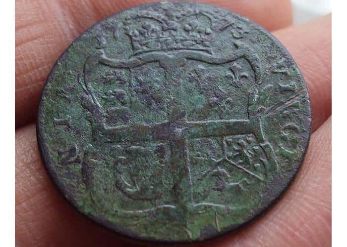 <p><strong>I was hunting an old farm today and this was the FIRST target I dug, I can't believe I dug this in my area of Ohio.</strong> A Virginia half penny, it has a clear date of 1773....man I am pumped up!!! I scratched it, sadly because it had roots all over, but right now I am so happy I don't even care. Before this my oldest coin was a undated capped bust dime.</p>