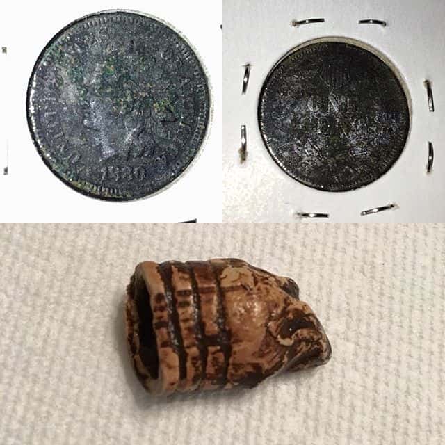 Notable weekend finds: A toasty 1880 Indian Head Penny, and a shot 3-Ring Minie Ball.