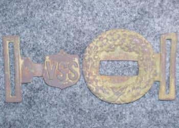 <strong>This was the last thing on my mind was to dig a two piece tongue and wreath side by side.</strong> I found the wreath first at about 3-4 inches and about 15 minutes later maybe 4-5 inches to the right of that hole I received another singled, thinking yea right I dug down about 1 1/2- 2 inches and out came the tongue and after close inspection as I had never seen one like it the letters VSS came to light (Vicksburg Sharp-Shooters) associated with Co E 12th Mississippi Regt from Warren County, Miss.