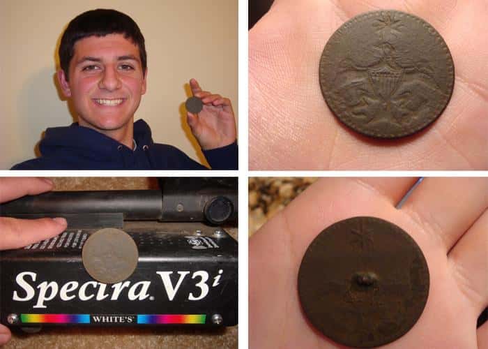 <p>Now for the exciting story of the find of a lifetime. It was a regular weekend, clear sky about 65 degrees and a gut feeling I was going to find something. I located a small patch of woods near a house that George Washington stayed at during the Revolutionary War. The even more crazy part was that I had a dream the night before of me finding a GW button. The day started of slow, I only found a 1953 wheatie and a pouch full of trash. Then next to a big rock, I got a 51 -52 signal on my spectra V3i.</p>