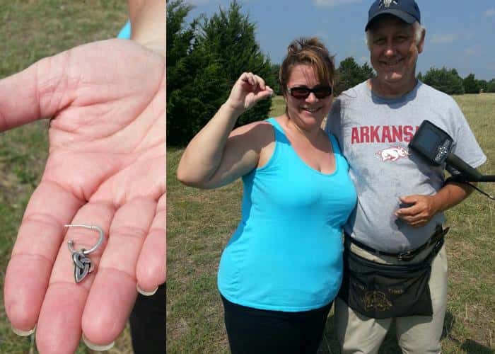<p><strong>I thought I would send this after reading the owners rendition of the whole scenario.</strong> It seems that there was more to the story over the loss and the history of the earring than I knew ahead of taking the V3i to the field. This was found yesterday, May 21st, out in an open field, using my V3i. Her friend was swinging my M6, Cathy and I have been working together for a month or two since she decided to get into detecting, she using my M6. We had the other earring to sample before the hunt in order to get proper tone and VDI. The owner's story was mainly why I felt that White’s would appreciate reading this. I am also pleased that I was successful in finding such a small piece in a rather large area, in an hour. The hunt was near the give-up stage, and then luck struck.</p>