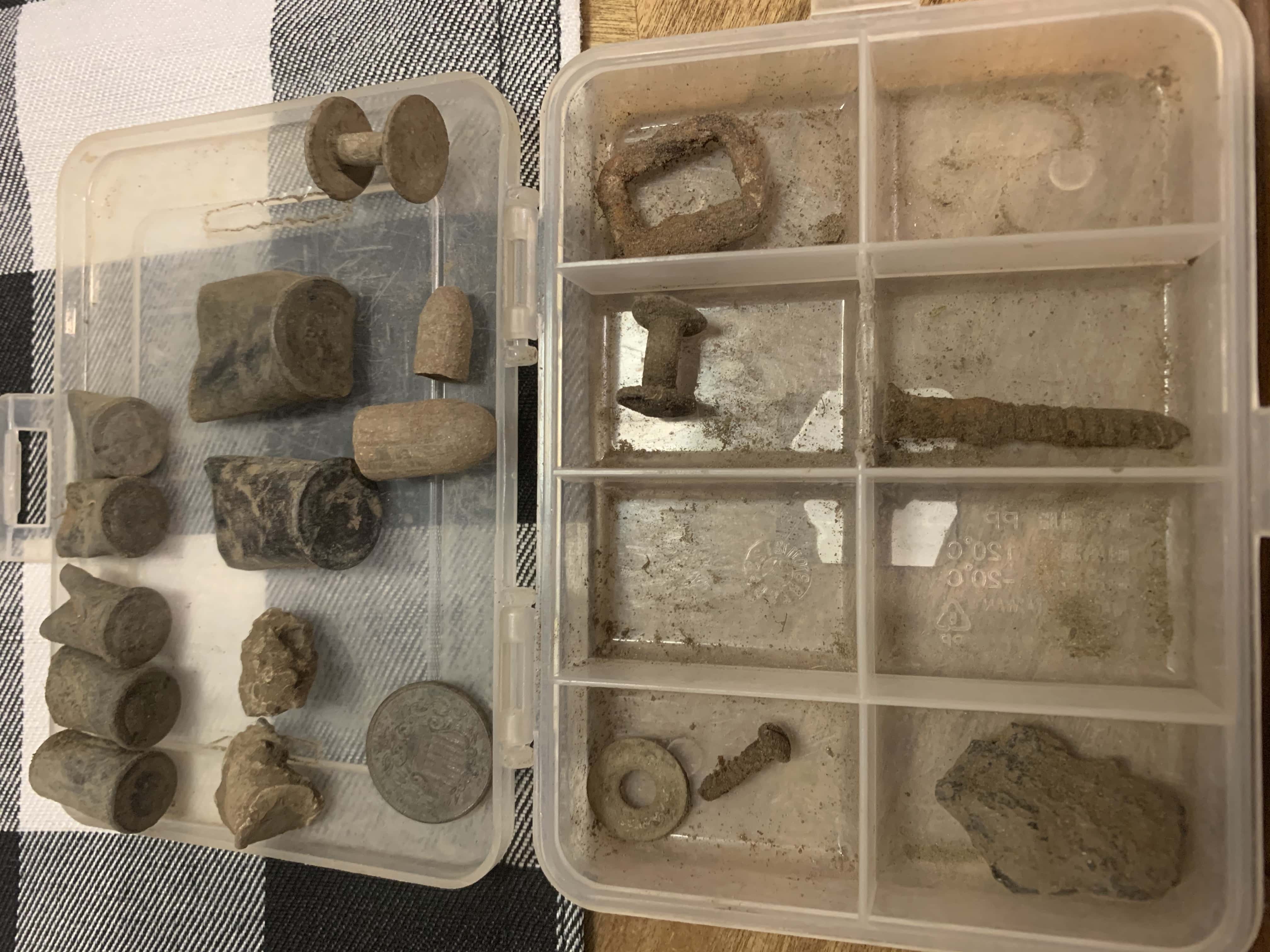 This weekend I received permission to detect an old area that used to be a farm. The land owner took me to a couple spots he thought may have potential. After walking around for hours with nothing but trash to show for my time, I was ready to call it quits. There was a creek that ran through the edge of the property that I decided to follow on the way back to my truck. I crawled over the fence and walked roughly twenty feet to the creek bank when I heard the first signal on my at pro. I dug down 6 inches and out of the edge of my hole fell a nice 1867 nickel! Knowing a little history of the area I knew that during the Indian wars there were camps in the area that guarded the railroad workers that were building the tracks. I searched some more and found quite a few artifacts that proved that this was probably one of these camps. I cant wait to get back out there!