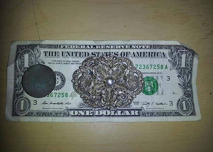 <p>I kept on searching for a while when I had a huge hit at about 8 inches. After digging down past 8 inches I was discouraged but the machine was telling me there was defiantly something in the hole. At 12” I saw the sweet glint of silver, dug around it and pulled the beautiful silver brooch out! All I can say is hands Whites makes the best detectors for all applications!</p>